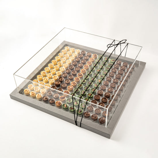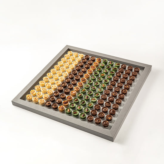 Introducing our Wooden Rectangle Tray adorned with an assortment of delectable chocolates. This exquisite 1000g collection is a feast for the senses, combining luxurious chocolate with an elegant presentation.