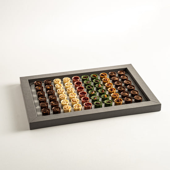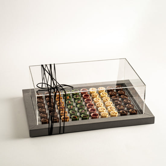 Introducing our Wooden Rectangle Tray adorned with an assortment of delectable chocolates. This exquisite 675 g collection is a feast for the senses, combining luxurious chocolate with an elegant presentation.