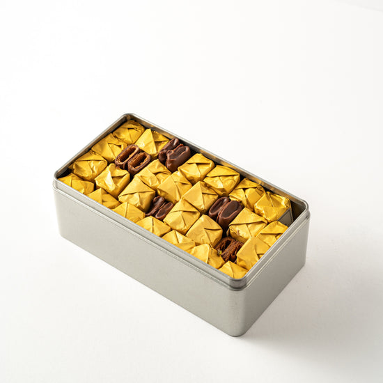 A generous assortment of crispy crepe dentelle chocolates in a stylish silver box. Ideal for celebrations and sharing.