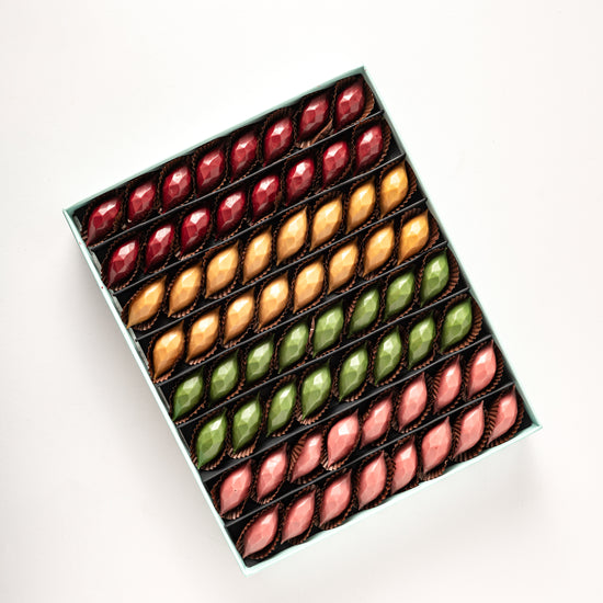 Indulge in a luxurious selection of diamond-shaped chocolates, beautifully presented in a vibrant, colorful box. This 735g assortment offers a delightful variety of premium chocolates, crafted to perfection with exquisite flavors. Ideal for gifting or treating yourself to a taste of elegance.