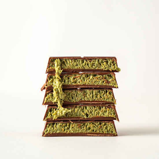 A delightful fusion of kunafa crunch and smooth chocolate, offering a unique Middle Eastern-inspired treat.