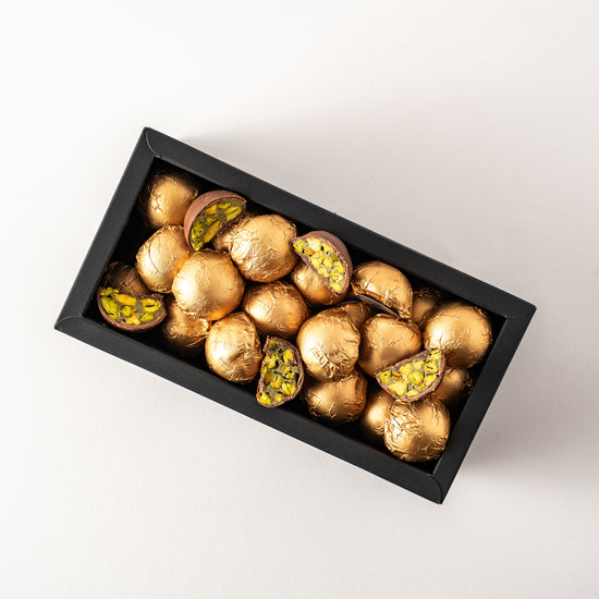 A premium 1kg box of indulgent pistachio-loaded chocolate bites, perfect for gifting or sharing.