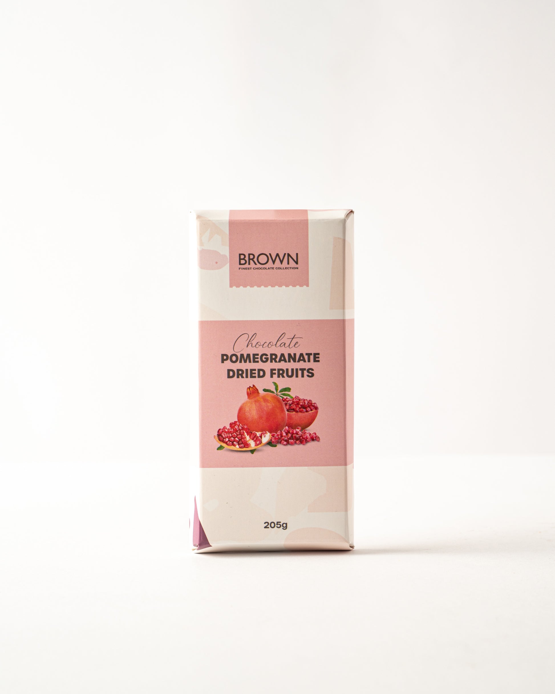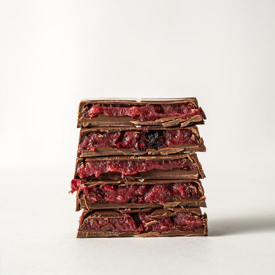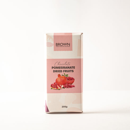 A refreshing blend of chocolate, tangy pomegranate, and mixed fruits, creating a vibrant and flavorful bar.