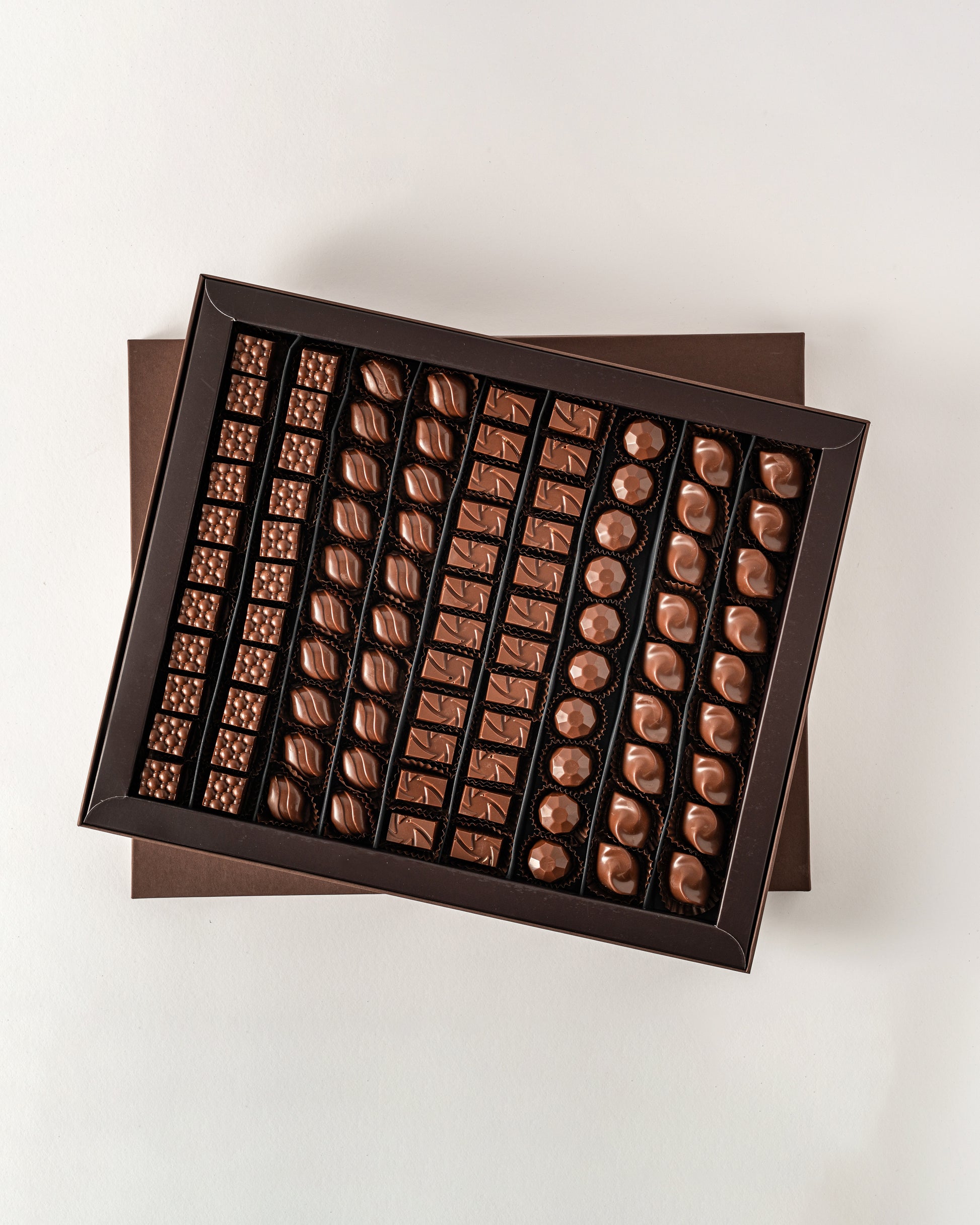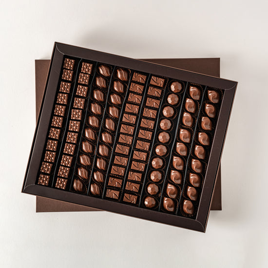 This 845-gram assorted chocolate box features a delectable mix of regular and classic unwrapped chocolates. It offers a rich variety of flavors and textures, making it perfect for those who appreciate both timeless classics and everyday favorites in a single, elegant box.